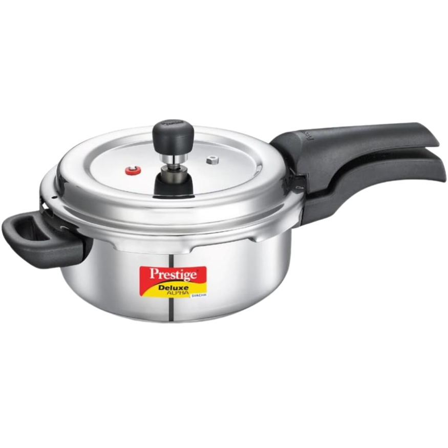 Prestige 2 Litre Stainless Steel Deluxe Alpha Svachh Outer lid Pressure Cooker|Deep lid for spillage control | 10 years Warranty| Gas & Induction compatible | Gasket release System| ISI Certified