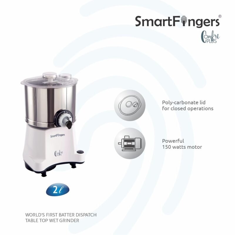 Comfort Plus Table Top Magic Wet Grinder 230V 50hz, 2 Liter, White, 2 Stone With Atta Kneader And Cocunut Scrapper |5 Years Warranty