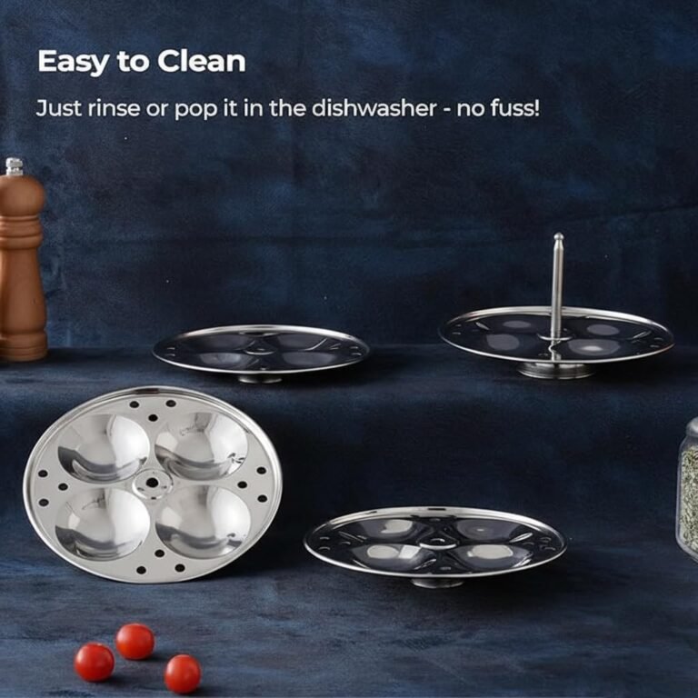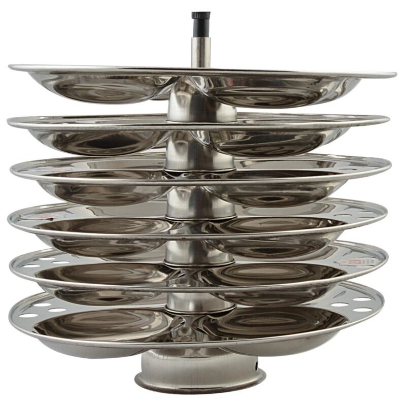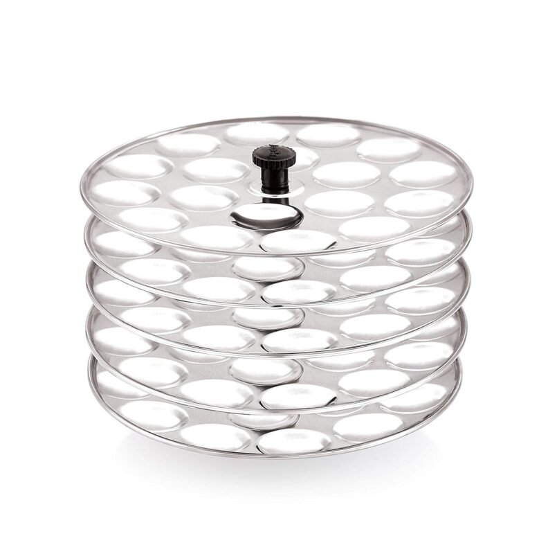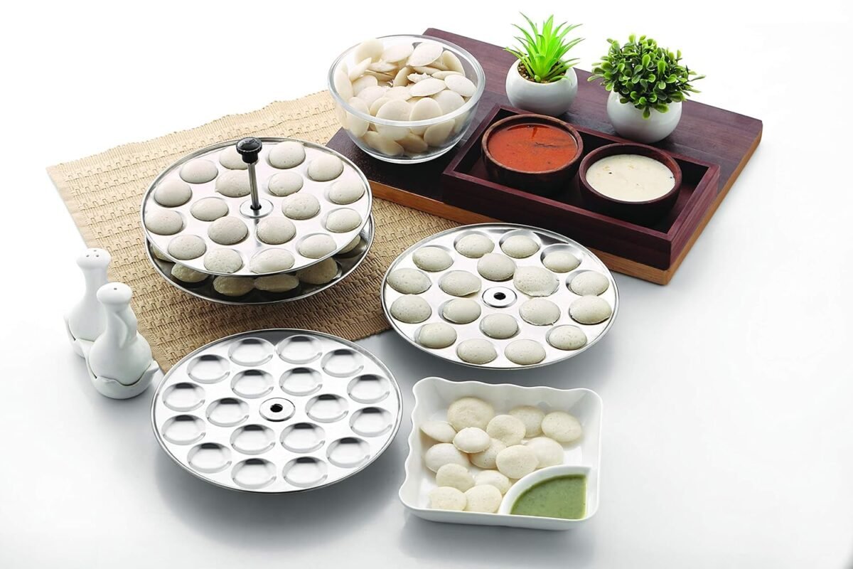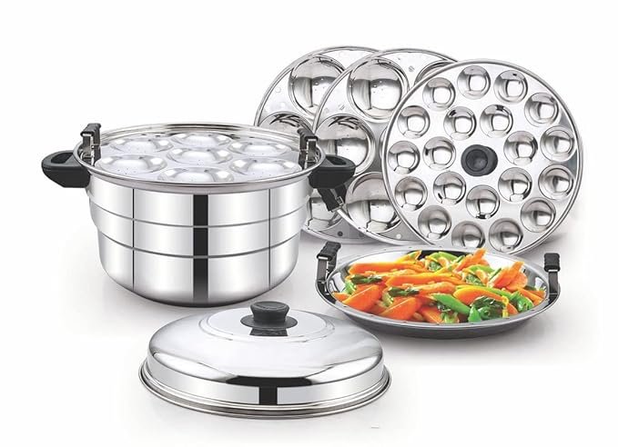 - Crafted with utmost care for premium quality, this Idli maker is meticulously fashioned from durable stainless steel, boasting heavy-gauge construction. Its design assures not only longevity but also guarantees 100% food-grade safety, providing you with peace of mind.