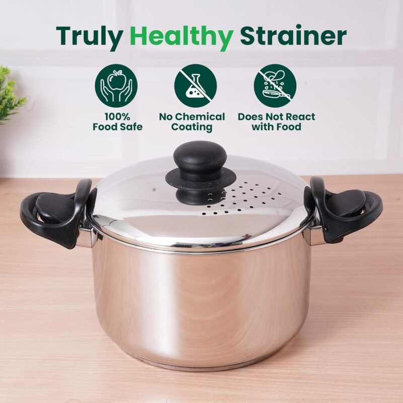 Diamond Stainless Steel Strainer pot / Rice Pot With Strong Lockable Lid Suitable for Noodles,Pasta,Corn,Soya,Vegetables and Rice|3.5 ltrs Capacity|Gas & Induction Compatible |3- Layer Thick Bottom