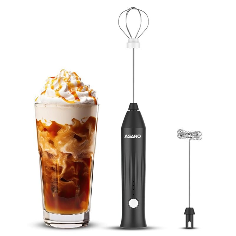AGARO Royal Milk, 3‑Speed Electric for Coffee with Whisk and, Mixer, Stand‑up Design, for Cream (Whisk Milk), Rechargeable, Stainless Steel