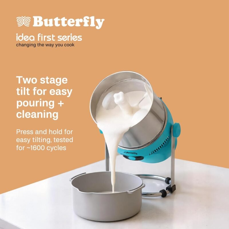 Butterfly Orchid Plus 2L Tilting Wet Grinder | Easy to Tilt | Convenient Two Angled Pour | Auto Tilt Cut Off | 200 W Motor – Efficient Grinding | Free Atta Kneader & Coconut Scrapper | 5 Yr Warranty