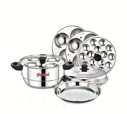 Diamond Stainless Steel Multi Steamer Pot Induction Base (3 idli plates/12 idlis, 1Mini Idli Plate/And 1 Multi Purpose Steamer/Idiyappam Steamer Plate)(12 Idlis)