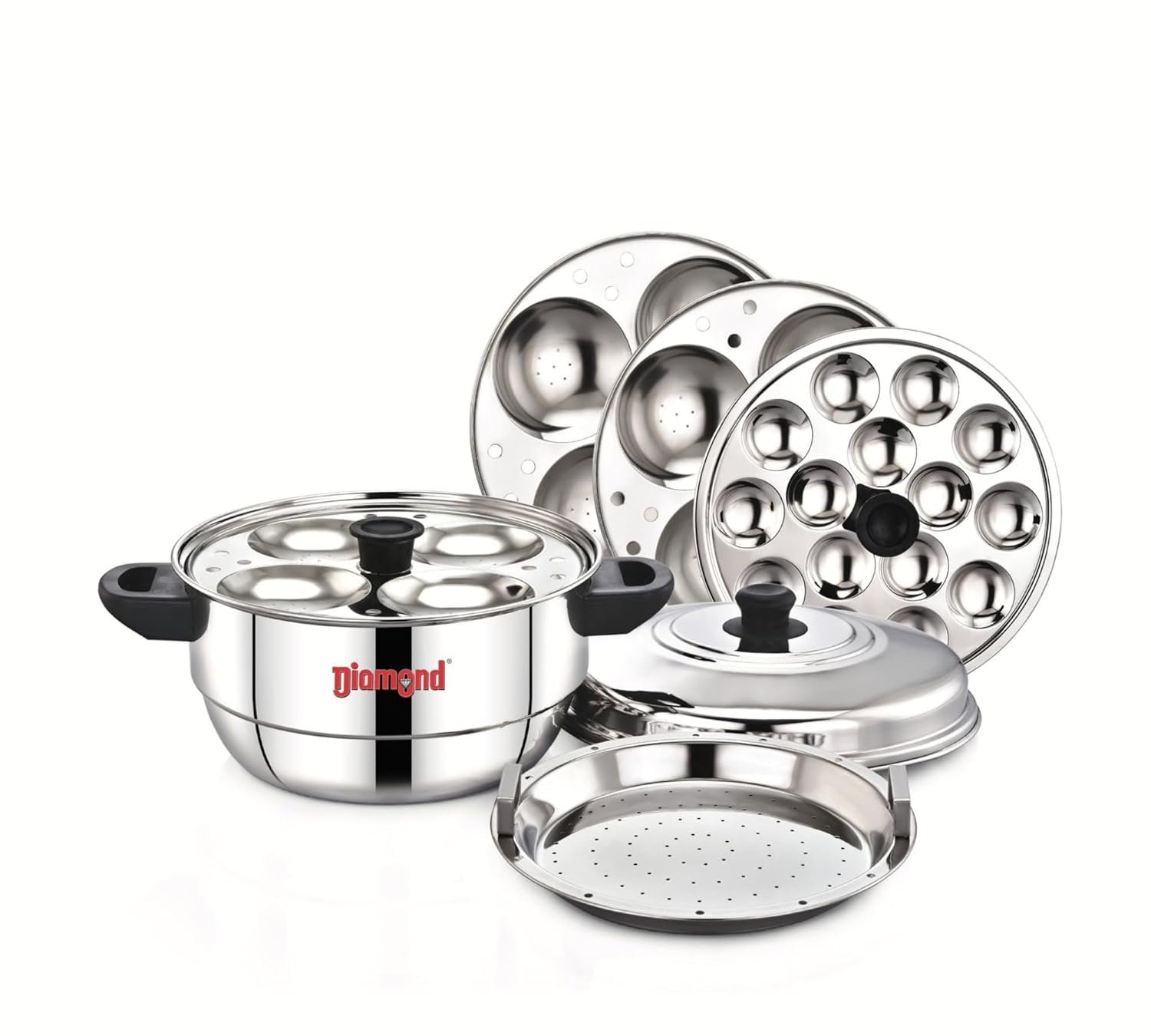 Diamond Stainless Steel Multi Steamer Pot (2 idli plates/9 idlis, 1Mini Idli Plate/And 1 Multi Purpose Steamer/Idiyappam Steamer Plate)(9 Idlis)