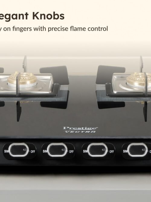 Prestige Vectra 4 Burner Glasstop Gas Stove|Superior Toughened Glass|Jumbo Brass Burner|3-Way Gas Inlet|360 Degree Revolving Nozzle|10 Years Warranty on Glass|Black,Manual ₹13,825.00 Original price was: ₹13,825.00.₹10,799.00Current price is: ₹10,799.00.
