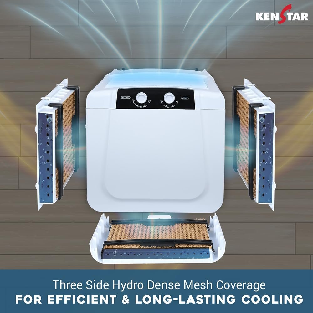 - ✅ ANTI-BACTERIAL HEXACOOL TECHNOLOGY PADS: Safeguard from bacteria and keeps it hygienic. Provide fresher & cleaner air and is malodour resistant. HEXACOOL TECHNOLOGY comes with HEXAGONAL DESIGN cooling media delivering maximum cooling with minimum water consumption.