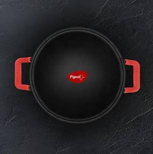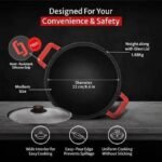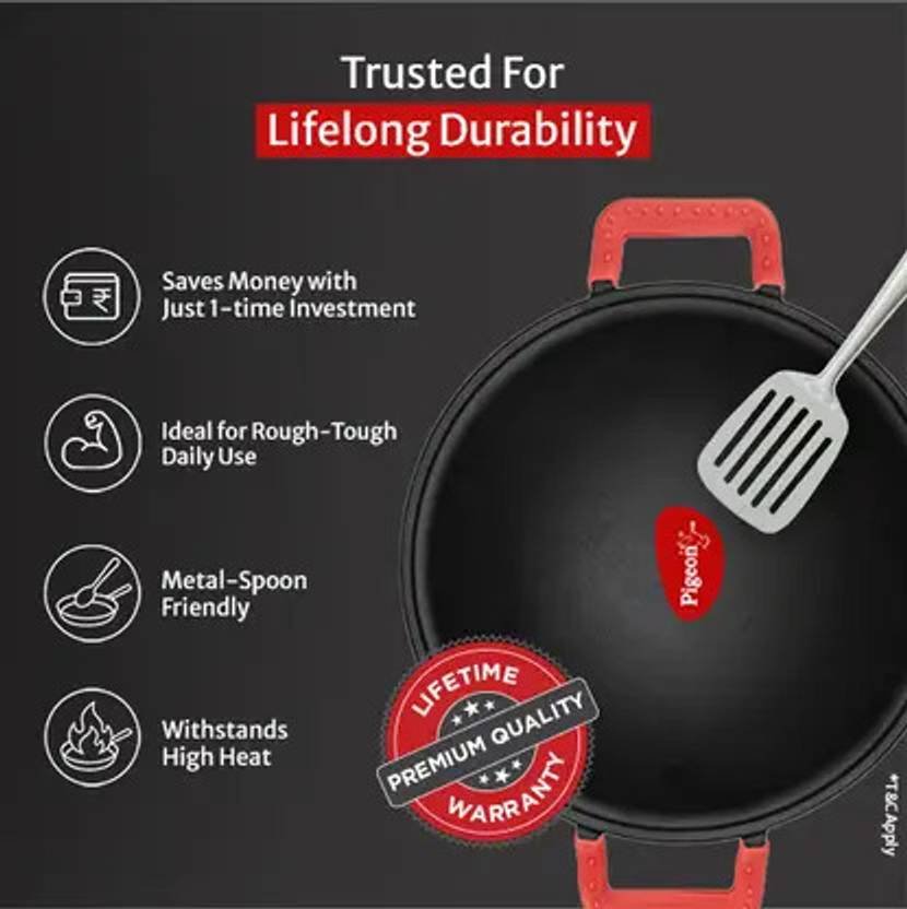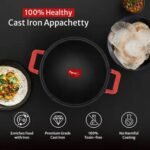Pigeon Imperi Cast Iron 22cm Appachetty/Appam Pan, Free Glass Lid & Silicone Grips, Pre-seasoned,100% Toxin-Free, Naturally Nonstick Appachatti, Makes Food Tastier, Strong & Durable, Gas & Induction