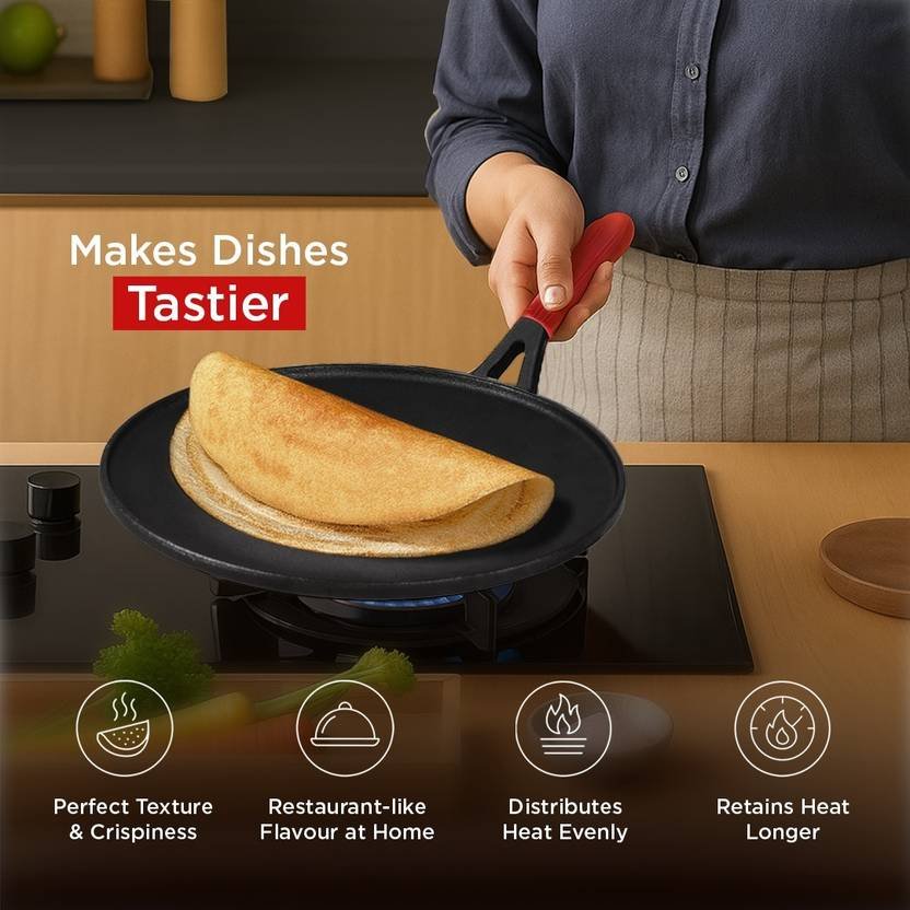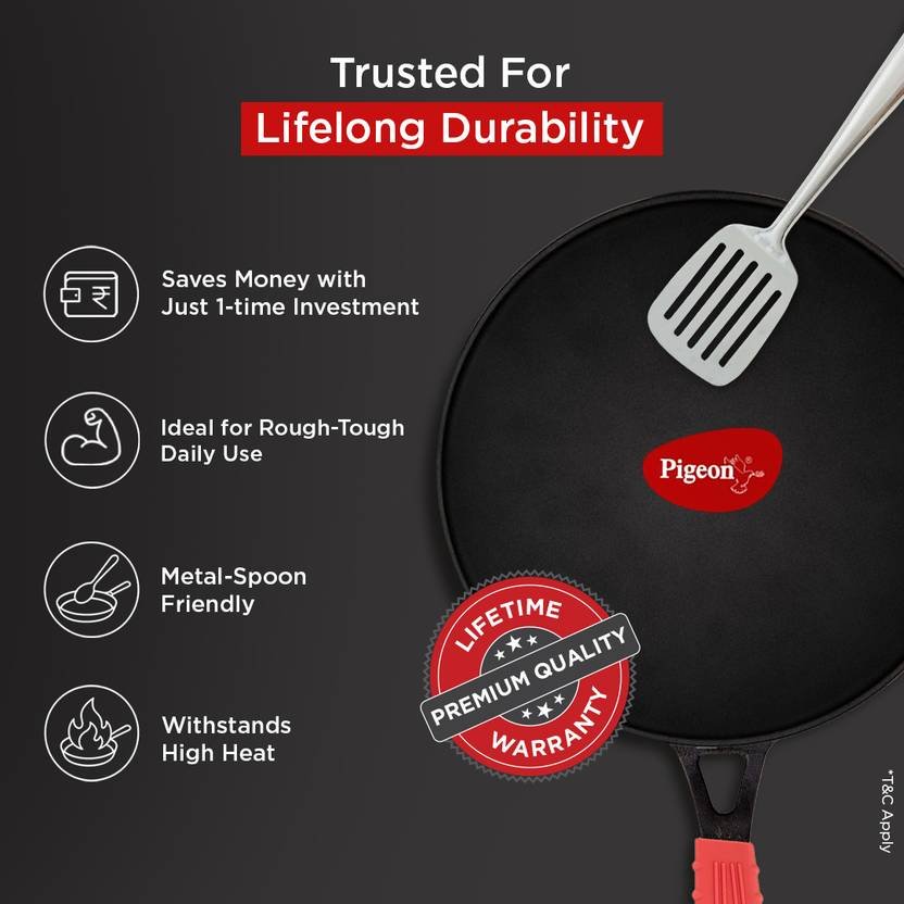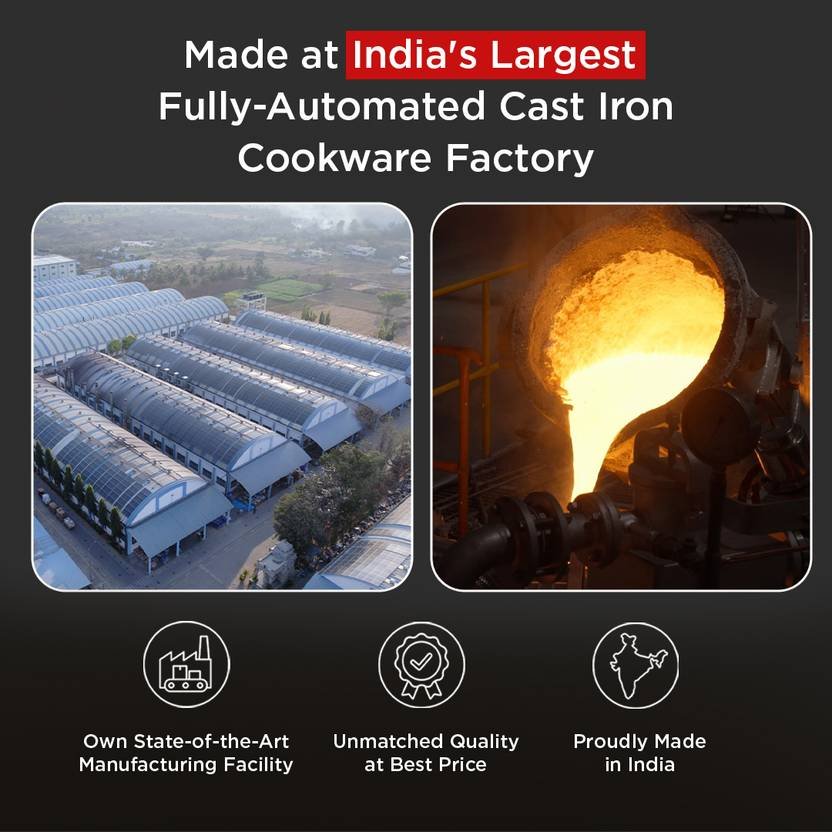Pigeon cast iron cookware is your healthy, traditional and flavourful alternative to typical aluminium based cookware. Cast iron has a number of properties, including heat retention for a very long time. Completely compatible with all stovetops including induction, try this high quality cast iron range, made with high pressure casting technology. This range is made in India, and comes with lifetime warranty on manufacturing defects.