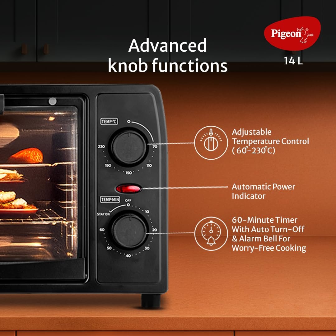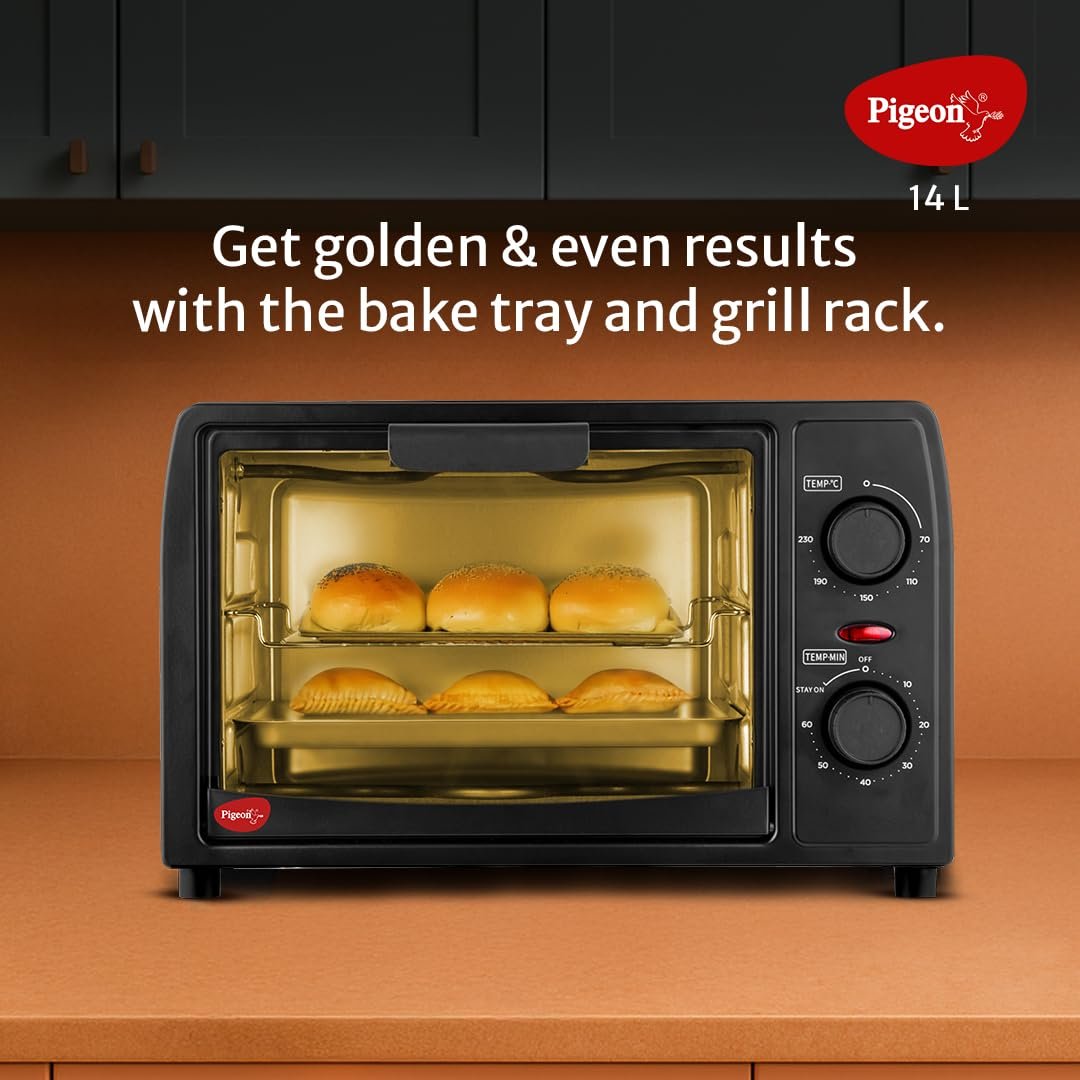 Home OVENS (Oven Toasters and Griller) Pigeon Oven Toaster Grill 14 Liters OTG| 900 Watts| Toast, Grill, Bake & Roast | Heat Resistant Tempered Glass| Black
