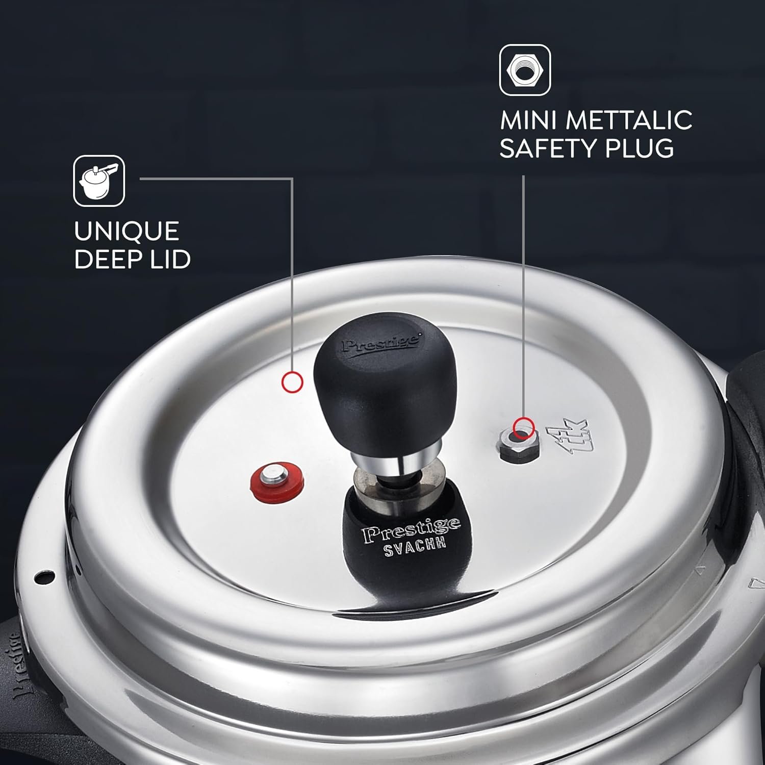 Prestige 3.5 Litre Stainless Steel Deluxe Alpha Svachh Outer lid Pressure Cooke |Deep lid for spillage control | 10 years Warranty| Gas & Induction compatible | Gasket release System| ISI Certified