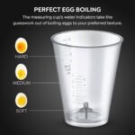 - Measuring Cup for Perfect Results – Achieve your desired egg texture with ease, thanks to the included measuring cup with a water indicator. Whether you prefer soft, medium, or hard-boiled eggs, this cooker delivers precision every time!
