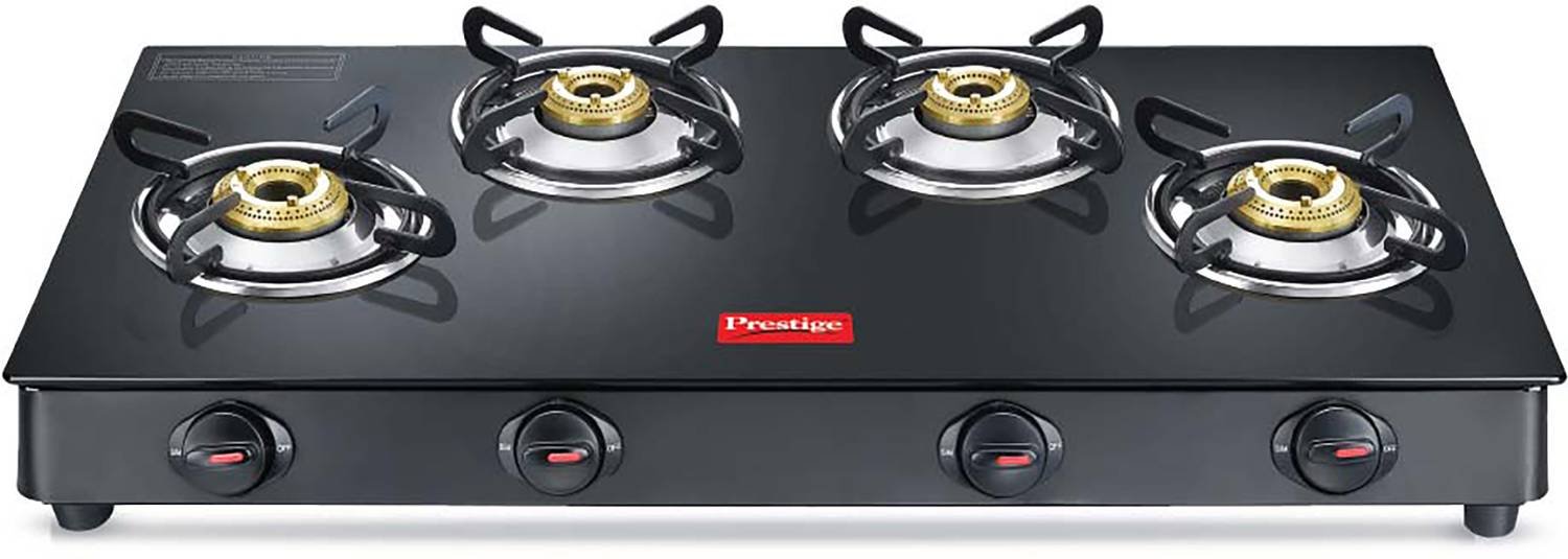 Home Gas Stoves Prestige Magic Plus GTMP-04 L With Powder Coated Body Glass Manual Gas Stove (4 Burners)