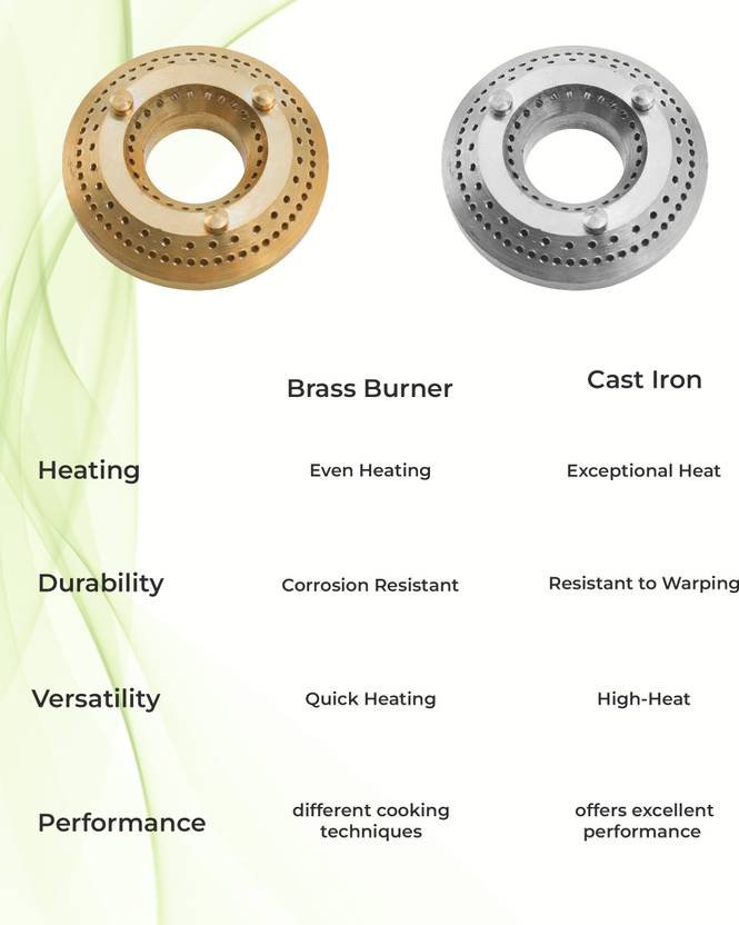 • Tri-Pin Brass Burners for Even Heat Distribution: Equipped with tri-pin burners, including a powerful jumbo burner, for faster cooking and even heat distribution, perfect for heavy-duty cooking and large meals.