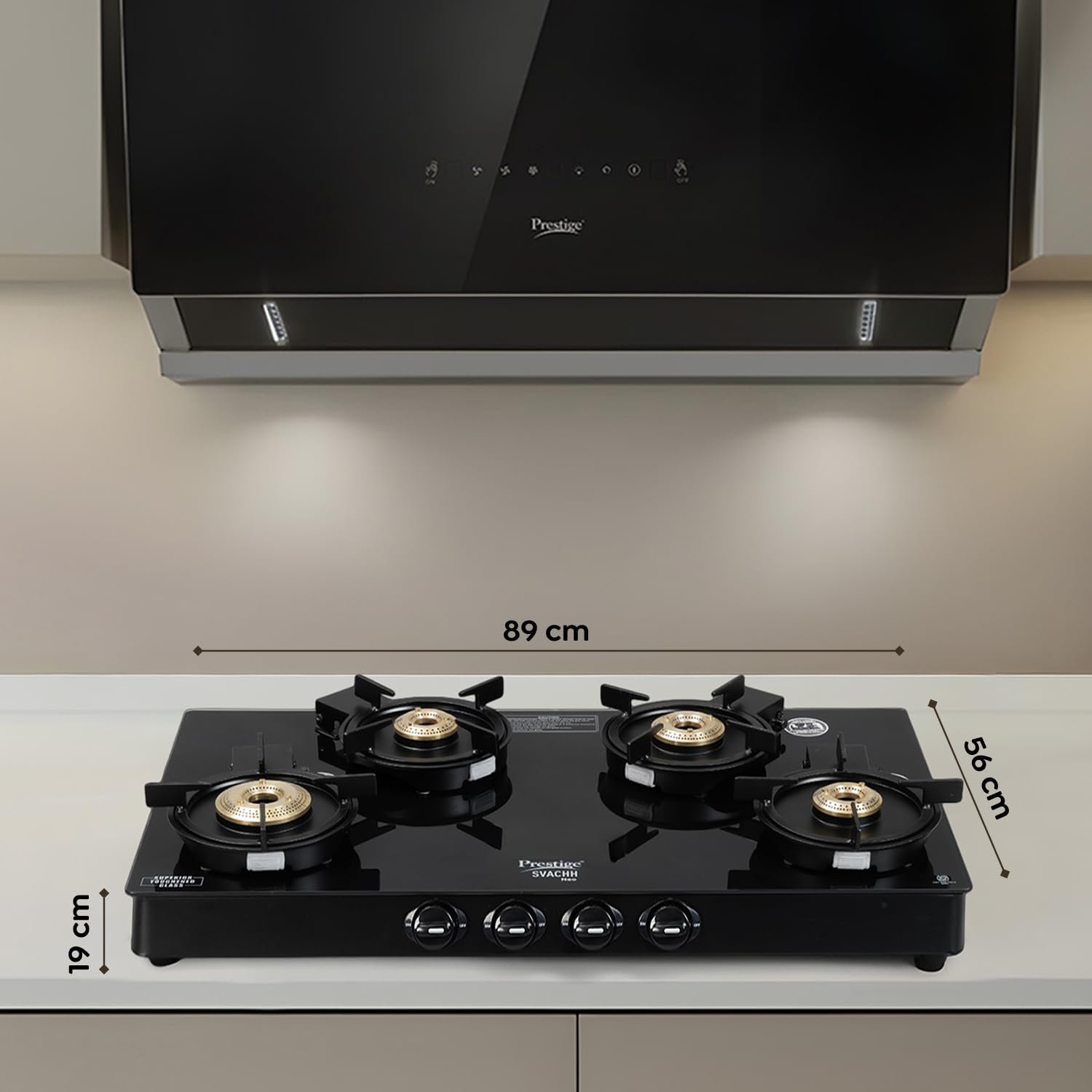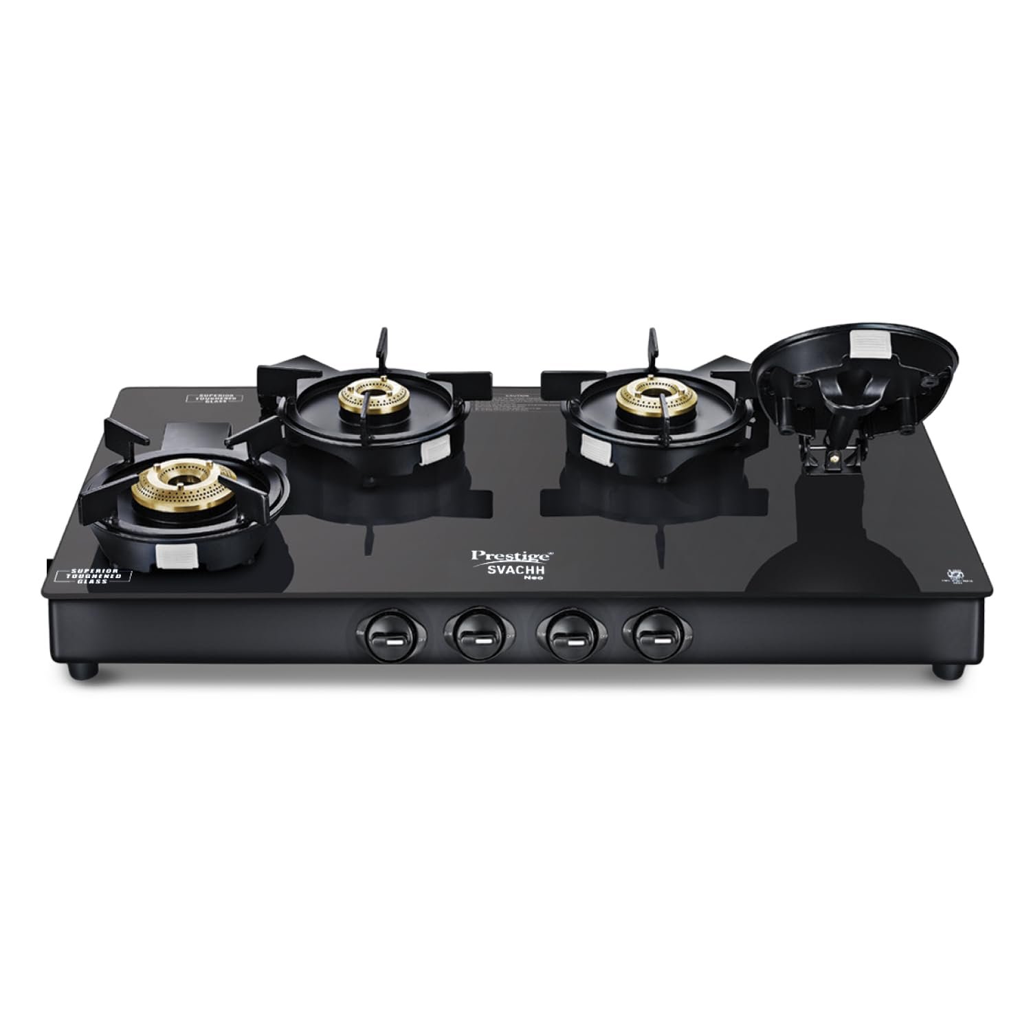Prestige Svachh Neo Gtsn 04 L Toughened Glasstop Gas Stove with Liftable 4 Burners (Black), Open