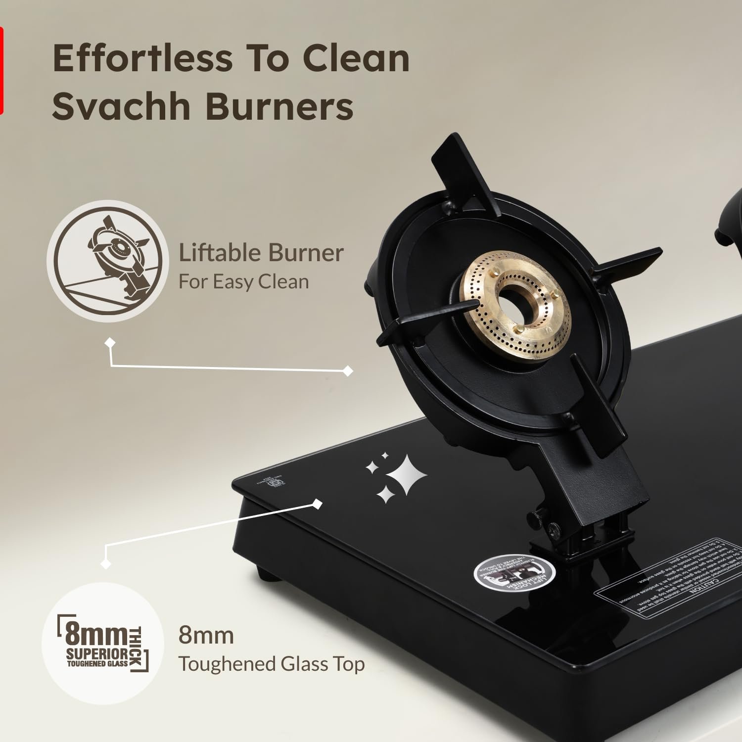 Pigeon Ayush BLK Glass Manual Gas Stove (2 Burners)