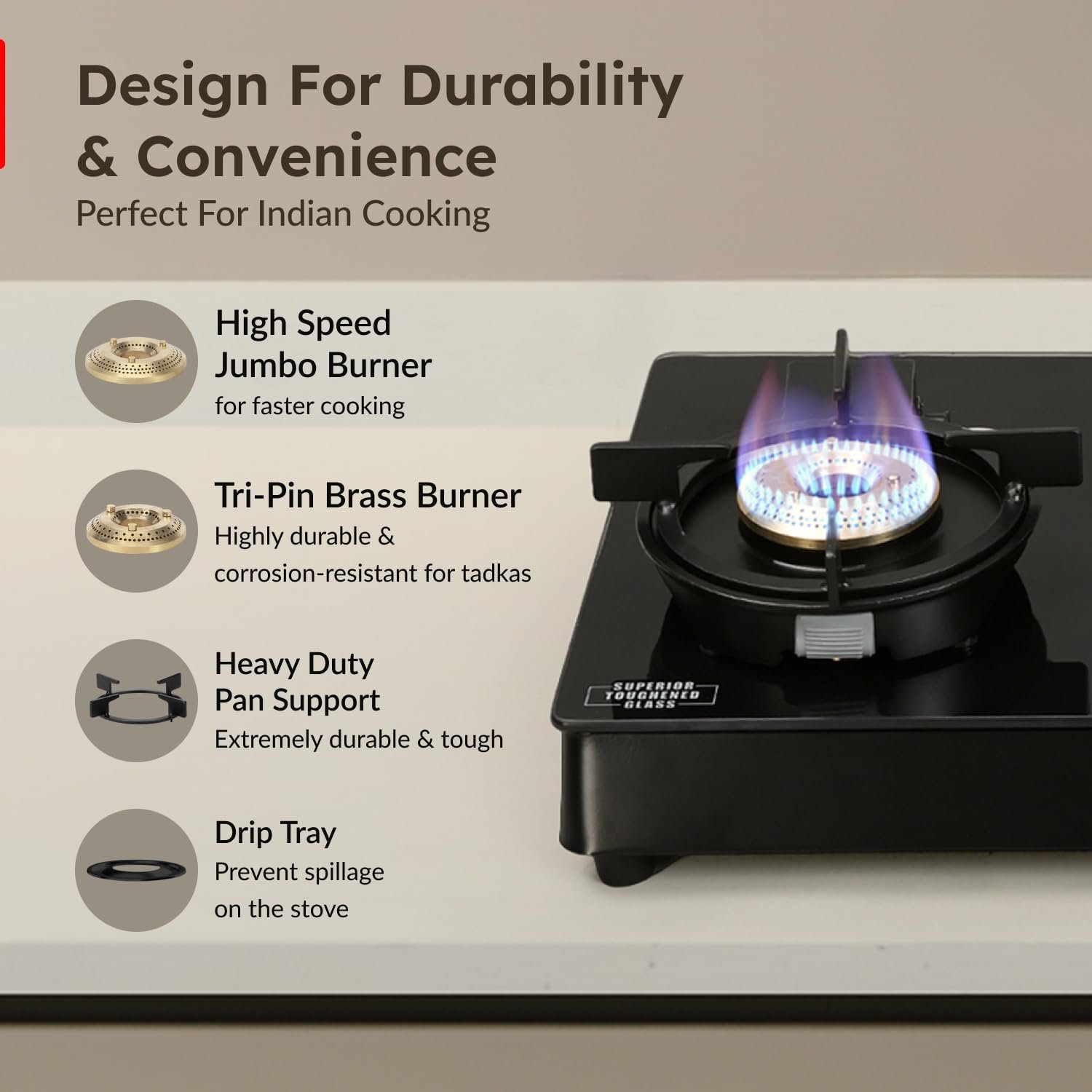 - Its 360 Degree revolving nozzle lets you effortlessly connect the gas pipes from any direction. The removable Stainless Steel Spill Tray keeps your kitchen tidy and mess-free. Powder Coated Pan Support prevents corrosion and provides high durability