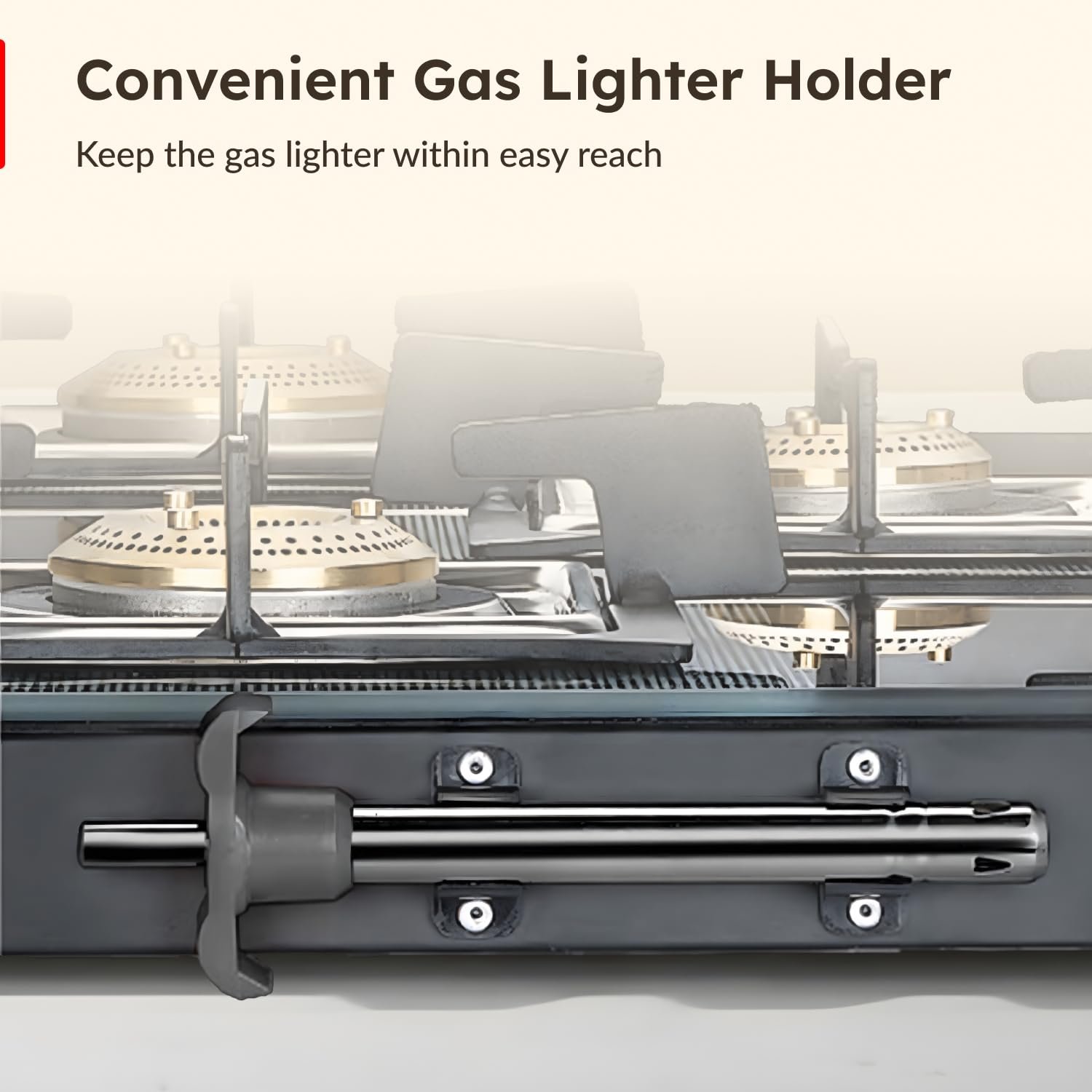 • GAS LIGHTER HOLDER and CLEANING STAND: Handy gas lighter holder to simplify your kitchen setup and Cleaning Stand for easy to clean gas stove bottom